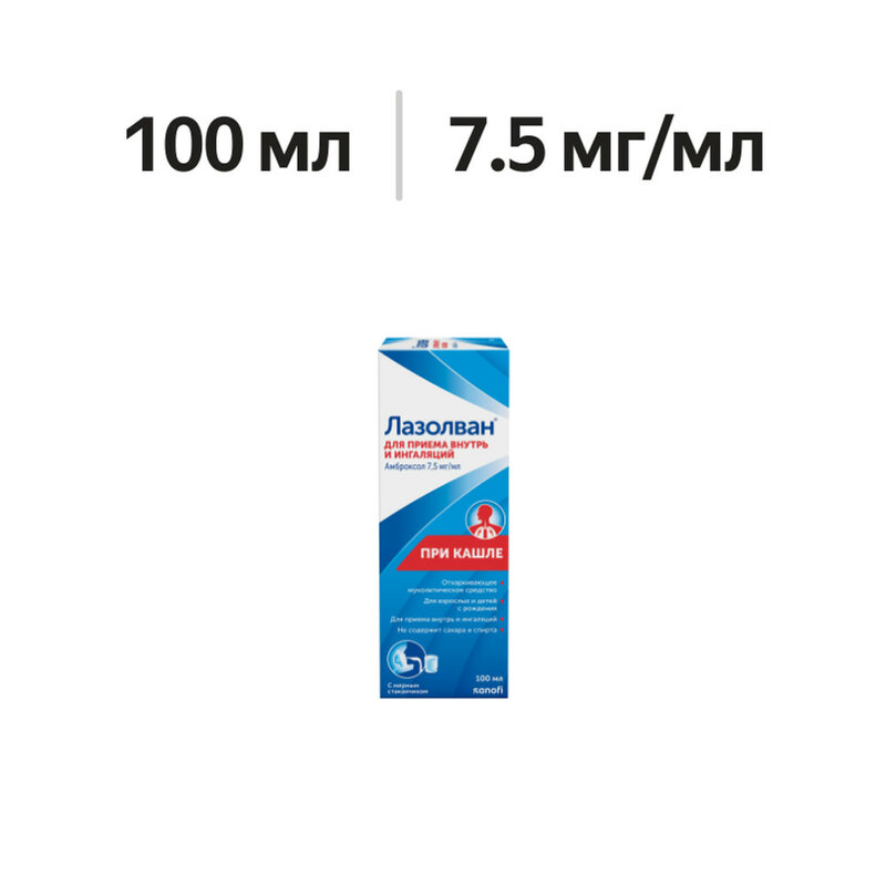 Лазолван раствор для приема внутрь и ингаляций 7.5 мг/мл 100 мл