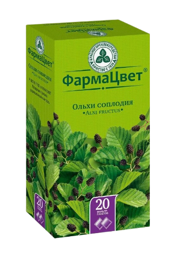 Вяжущее средство растительного происхождения. Соплодия ольхи содержат биологически активные вещества, в т.ч. дубильные вещества, флавоноиды.