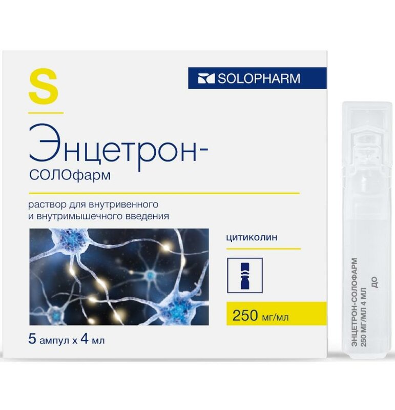 Действующее вещество: цитиколин натрия, в пересчете на цитиколин 250 мг. Вспомогательные вещества: 1 М раствор хлористоводородной кислоты или 1 М раствор натрия гидроксида до pH 6,0-8,0, вода для инъекций.