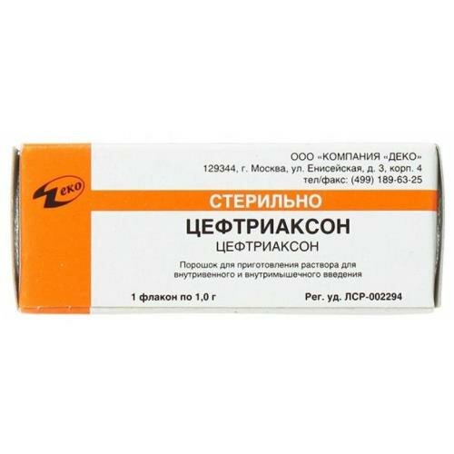 Цефтриаксон (в форме натриевой соли) - 1 г.