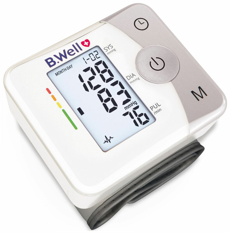 Автоматический тонометр B.Well MED-57 – современный тонометр на запястье с расширенными функциями. Инновационная технология Intellect Active позволит провести измерение точно, быстро и бережно. Запястный тонометр MED-57 проводит измерение на этапе нагнетания воздуха в манжету, подстраивается под каждого пользователя, определяя индивидуальный уровень накачки манжеты. Индикатор аритмии поможет выявить нарушение сердечного ритма на ранней стадии. Компактный MED-57 удобно взять с собой, а подсветка дисплея позволит провести измерение при любом освещении. Звуковые сигналы можно отключить, чтобы не беспокоить близких в ночное время. В комплекте удобный пластиковый футляр, который защитит прибор в дороге и при хранении. Функция расчета среднего значения трех измерений позволит получить точный результат измерения согласно рекомендациям врачей. Достаточно провести три измерения, а прибор сам рассчитает среднее значение систолического, диастолического давления и частоты пульса. А цветная шкала – подсказка уровня давления позволит сразу оценить полученный результат измерения. С тонометром MED-57 легко контролировать давление: прибор имеет память на 30 измерений с датой и временем. Это настоящий «Дневник измерений», который всегда под рукой. Кроме того, MED-57 имеет «Гостевой режим измерения»: в этом режиме тонометр не сохраняет в памяти результат измерения. Вы можете дать другому лицу измерить давление MED-57, и при этом в памяти останутся только Ваши результаты измерений. Увеличенная манжета тонометра MED-57 для обхвата запястья 13,5-21,5 см подойдет большинству пользователей. Тонометр на запястье MED-57 – точность, комфорт и полноценный контроль давления в компактном корпусе.