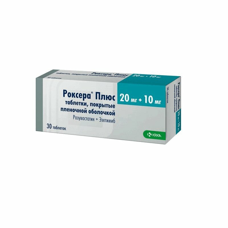 Препарат Роксера® Плюс является гиполипидемическим препаратом, который селективно снижает абсорбцию холестерина (ХС) и некоторых растительных стеролов в кишечнике, а также подавляет эндогенный синтез ХС. Розувастатин + эзетимиб. ХС поступает в плазму крови в результате всасывания в кишечнике и эндогенного синтеза. Препарат Роксера® Плюс содержит эзетимиб и розувастатин, два гиполипидемических компонента, дополняющих друг друга по механизму действия. Комбинация розувастатин + эзетимиб снижает повышенную концентрацию общего холестерина (ОХС) в плазме крови, холестерина липопротеинов низкой плотности (ХС-ЛПНП), аполипопротеина В (Апо В), триглицеридов (ТГ) и холестерина липопротеинов невысокой плотности (ХС-не-ЛПВП, рассчитывается как разность между концентрацией ОХС и концентрацией ХС-ЛПНП) и повышает концентрацию в плазме крови холестерина липопротеинов высокой плотности (ХС-ЛПВП) путем двойного ингибирования, как абсорбции, так и синтеза ХС. Розувастатин Розувастатин является гиполипидемическим средством из группы статинов. Селективный конкурентный ингибитор 3-гидрокси-3-метилглутарил коэнзим А (ГМГ-КоА)-редуктазы - фермента, превращающего ГМГ-КоА в мевалонат, предшественника ХС. Розувастатин увеличивает количество рецепторов ЛПНП на поверхности гепатоцитов, что приводит к усилению захвата и катаболизма ЛПНП, ингибированию синтеза липопротеинов очень низкой плотности (ЛПОНП), уменьшая общую концентрацию ЛПНП и ЛПОНП. Снижает концентрации ХС-ЛПНП, ХС-не-ЛПВП, ХС-ЛПОНП, ОХС, ТГ, ТГ-ЛПОНП, Апо В, снижает соотношения ХС-ЛПНП/ХС-ЛПВП, ОХС/ХС-ЛПВП, ХС-не-ЛПВП/ХС-ЛПВП, Апо В/аполипопротеина A1 (Aпo A1), повышает концентрации ХС-ЛПВП и Aпо A1. Терапевтический эффект появляется в течение 1 недели после начала терапии, через 2 недели достигает 90 % от максимального, к 4 неделе достигает максимума и после этого остается постоянным.