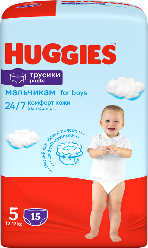 Трусики-подгузники Huggies размер 5 12-17 кг для мальчиков 15 шт.