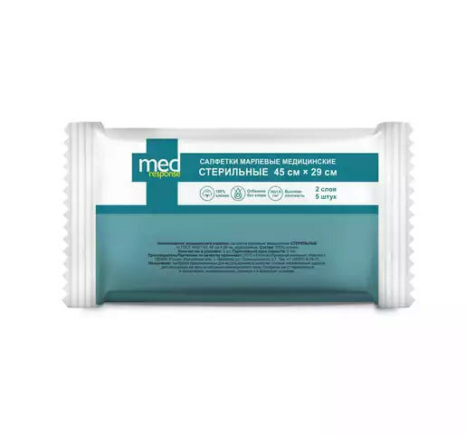 Салфетки марлевые Medresponse стерильные 45 см х 29 см 5 шт.