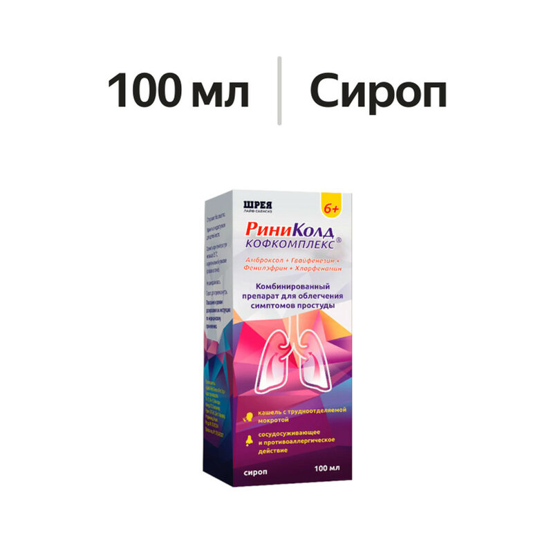 Действующее вещество: амброксола гидрохлорид 15 мг, хлорфенамина малеат 2 мг, гвайфенезин 100 мг, фенилэфрина гидрохлорид 5 мг. Вспомогательные вещества: сахароза - 4000 мг, метилпарагидроксибензоат - 18 мг, пропилпарагидроксибензоат - 2 мг, динатрия эдетат - 2 мг, сорбитол 70% раствор - 1000 мг, глицерол (глицерин) - 500 мг, ментол - 1 мг, лимонная кислота - 2 мг, натрия цитрат - 5 мг, ароматизатор дыни - 0.03 мл, краситель солнечный закат желтый (E110) - 0.66 мг, вода очищенная - q.s. до 10 мл.