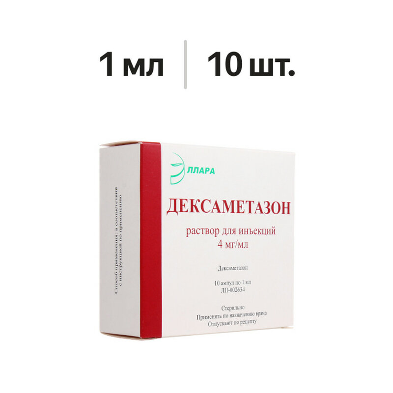 На 1 мл. Действующее вещество: дексаметазона натрия фосфат в пересчете на дексаметазона фосфат - 4.0 мг Вспомогательные вещества: глицерол (глицерин) - 22.5 мг , натрия гидрофосфата дигидрат (натрий фосфорнокислый двузамещенный 12-водный) - 0,8 мг Динатрия эдетата дигидрат (динатриевая соль этилендиаминтетрауксусной кислоты) - 0.1 мг, вода для инъекций - до 1.0 мл