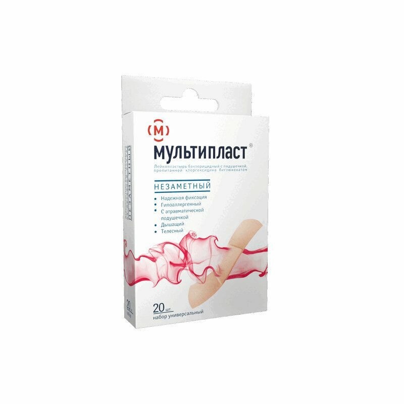 Мультипласт Набор лейкопластырей бактерицидный незаметный 20 шт.