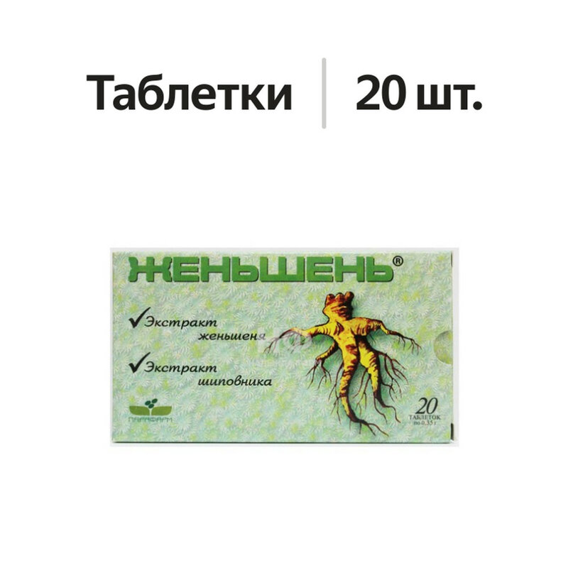 Общеукрепляющее, тонизирующее, повышающее работоспособность средство. Восстанавливает здоровье после перенесенных заболеваний. Эликсир жизни. Более 3000 лет используется как непревзойденный источник здоровья, бодрости, энергии! Корни женьшеня содержат широкий набор высокоактивных биологически активных веществ: тритерпеновые гликозиды, эфирное и жирное масла, полисахориды, ферменты, фитостерины, пектиновые вещества, смолы, значительное количество фосфора, серы и других макро- и микроэлементов. Наиболее специфическими для женьшеня являются сапонины – панаксозиды. Препараты женьшеня обладают большой широтой действия, могут применяться длительное время. Часто препараты женьшеня используются при физической и умственной усталости, общей слабости, плохой памяти, пониженной работоспособности, импотенции, сонливости. Особенно женьшень незаменим после перенесенных тяжелых заболеваний и операций. С успехом используется в комплексных терапевтических программах. Традиционно использовался как лучшее средство, предупреждающее старение.Научные исследования последних лет убедительно показали, что женьшень оказывает общеукрепляющее действие, помогая организму самому справляться со многими болезнями; улучшает кровоснабжение мозга; укрепляет сердечно-сосудистую систему; регулирует работу желез внутренней секреции; повышает работоспособность; снижает уровень холестерина; регулирует уровень сахара в крови; на клеточном уровне стимулирует синтез белка, помогает регенерации тканей; повышает иммунитет; снимает синдром хронической усталости; применяется при лечении половых расстройств. Корни женьшеня, используемые для приготовления таблеток высшего качества, получены из экологически чистых районов, переработаны с использованием новой, высокоэффективной технологии.
