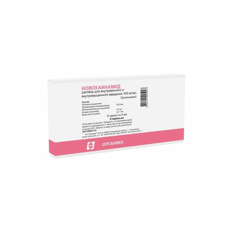 Антиаритмический препарат класса I A. Тормозит входящий быстрый ток Na+, снижает скорость деполяризации в фазу 0. Угнетает проводимость, замедляет реполяризацию. Снижает возбудимость миокарда предсердий и желудочков. Увеличивает длительность эффективного рефрактерного периода потенциала действия (в пораженном миокарде - в большей степени). Замедление проводимости, которое наблюдается независимо от величины потенциала покоя, больше выражено в предсердиях и желудочках, меньше в AV-узле. Непрямой м-холиноблокирующий эффект, по сравнению с хинидином и дизопирамидом, выражен меньше, поэтому парадоксального улучшения AV-проводимости обычно не отмечается. Влияет на фазу 4 деполяризации, снижает автоматизм интактного и пораженного миокарда, угнетает функцию синусного узла и эктопических водителей ритма у некоторых больных. Активный метаболит - N-ацетилпрокаинамид (N-АПА) обладает выраженной активностью антиаритмических лекарственных средств III класса, удлиняет продолжительность потенциала действия. Обладает слабым отрицательным инотропным эффектом (без существенного влияния на МОК). Имеет ваголитические и вазодилатирующие свойства, что обусловливает тахикардию и снижение АД, общего периферического сосудистого сопротивления (ОПСС). Электрофизиологические эффекты проявляются в расширении комплекса QRS и удлинении интервалов PQ и QT. Время достижения максимального эффекта при в/в ведении - немедленно, при в/м - 15-60 мин.