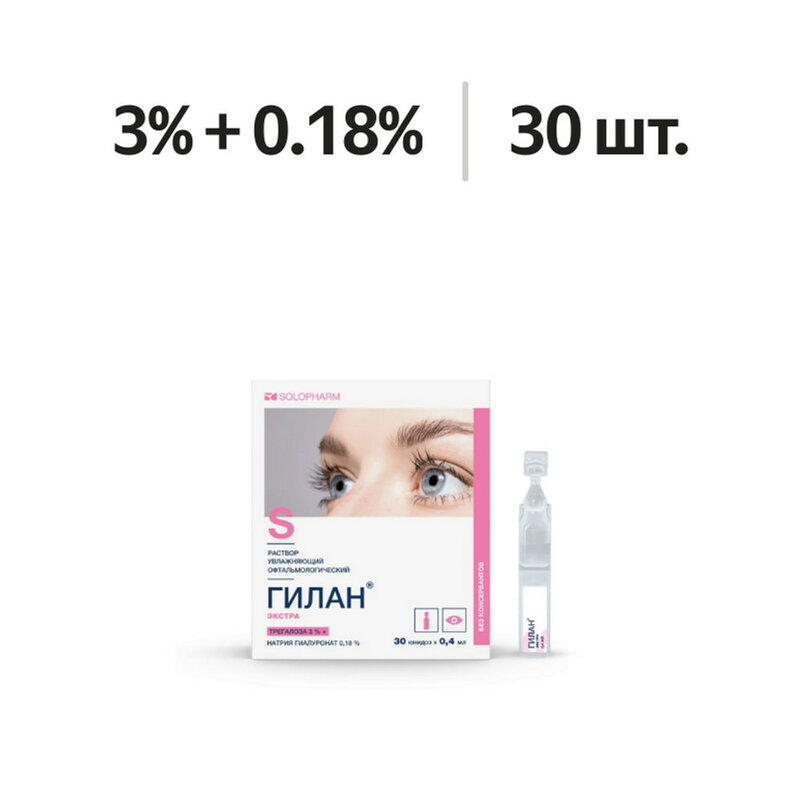 Благодаря сочетанию трегалозы и натрия гиалуроната Гилан® Экстра защищает, увлажняет и смазывает поверхность глаза в течение длительного времени и быстро дает ощущение комфорта.