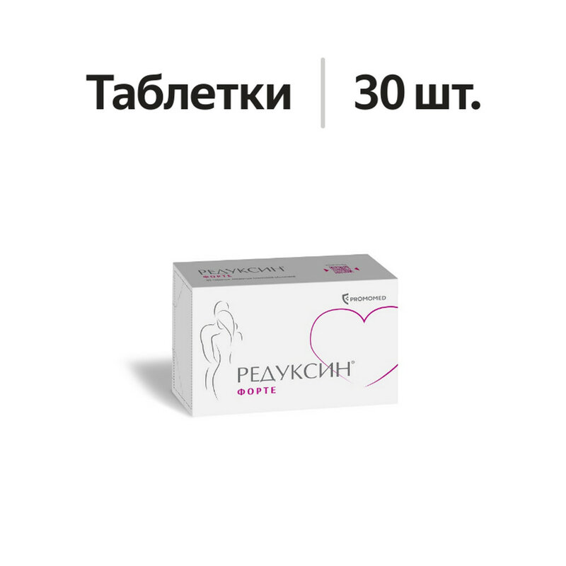 Сибутрамин. Является пролекарством и проявляет свое действие in vivo за счет метаболитов (первичных и вторичных аминов), ингибирующих обратный захват моноаминов (серотонина, норадреналина и дофамина). Увеличение содержания в синапсах нейротрансмиттеров повышает активность центральных 5НТ-серотониновых и адренорецепторов, способствует физиологической регуляции аппетита за счет увеличения чувства насыщения и снижения потребности в пище, а также увеличению термопродукции (внутреннего расхода энергии). Опосредованно активируя β3-адренорецепторы, сибутрамин воздействует на бурую жировую ткань. Снижение массы тела при приеме сибутрамина сопровождается увеличением концентрации в сыворотке крови ЛПВП и снижением концентрации триглицеридов, общего холестерина, ЛПНП и мочевой кислоты. Сибутрамин и его метаболиты не влияют на высвобождение моноаминов, не ингибируют МАО; не обладают сродством к большому числу нейромедиаторных рецепторов, включая серотониновые (5-HT1, 5-HT1А, 5-HT1B, 5-НТ2C), адренорецепторы (β1, β2, β3, α1, α2), дофаминовые (D1, D2), мускариновые, гистаминовые (H1), бензодиазепиновые и глутаматные NMDA-рецепторы. Одновременное применение метформина и сибутрамина повышает эффективность терапии у пациентов с ожирением. Посредством регуляции аппетита, снижения чувства голода, повышения расхода энергии и регуляции липидного и углеводного обменов Редуксин® Форте уменьшает массу тела человека и восстанавливает метаболическое здоровье. Клиническая эффективность и безопасность (результаты клинических исследований) В клиническом исследовании в группе препарата Редуксин® Форте доля пациентов, достигших клинически значимого снижения веса массы тела ≥5% за 3 месяца терапии (доля ранних ответчиков на терапию) превышала 90%. За 6 месяцев терапии 91.67% пациентов в группе Редуксин® Форте достигли снижения массы тела на 10% и более. Снижение массы тела сопровождалось клинически значимым уменьшением окружности талии и улучшением липидного профиля, что доказывает эффективность препарата в отношении снижении риска развития осложнений и отвечает основным целям терапии ожирения. В ходе исследования не наблюдалось негативного влияния препарата Редуксин® Форте на показатели сердечно-сосудистой системы при его применении у пациентов с ожирением.