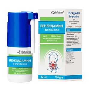 Бензидамин спрей 0.255 мг/доза 176 доз 30 мл