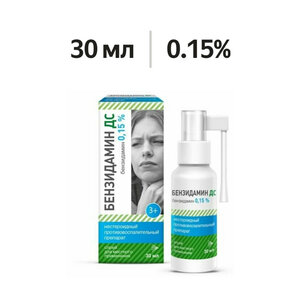 Бензидамин ДС спрей 0.15% 30 мл