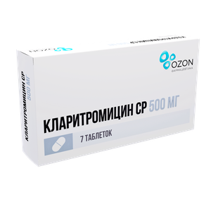 Кларитромицин СР таблетки с пролонгированным высвобождением 500 мг 7 шт.