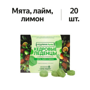 Кедрини Forte леденцы кедровые мята лайм и лимон 20 шт.