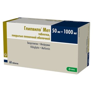 Глипвило Мет таблетки 50 мг + 1000 мг 60 шт.