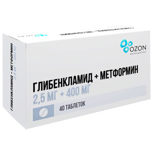 Глибенкламид + Метформин таблетки 2.5 мг + 400 мг 40 шт.
