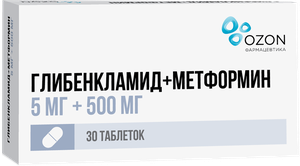 Глибенкламид + Метформин таблетки 5 мг + 500 мг 30 шт.
