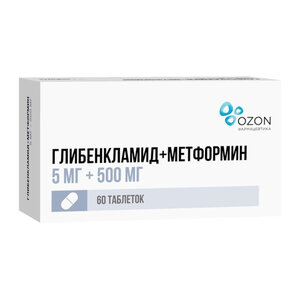 Глибенкламид + Метформин таблетки 5 мг + 500 мг 60 шт.