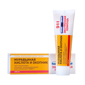 Гель-бальзам 911+ Ваша Служба Спасения для тела Муравьиная кислота и окопник разогревающий 100 мл