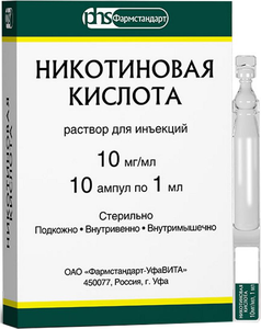 Никотиновая кислота раствор для инъекций 10 мг/мл ампулы 1 мл 10 шт.