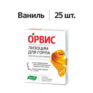 Эвалар Орвис Лизоцим для горла таблетки для рассасывания ваниль 25 шт.