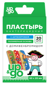 Пластырь UP&GO бактерицидный с домифенбромидом полимерный Пираты 20 шт.