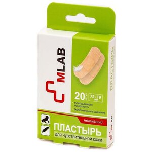 Пластырь MLAB нетканый для чувствительной кожи 72 х 19 мм 20 шт.