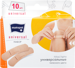 Пластырь Matopat Универсальный телесный 1.9 см x 7.6 см 10 шт.