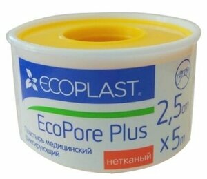 Ecoplast Пластырь медицинский фиксирующий нетканый EcoPore Plus 2,5 см x 5 м
