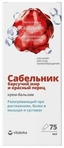 Vitateka Крем-бальзам для тела разогревающий сабельник, барсучий жир и красный перец 75 мл