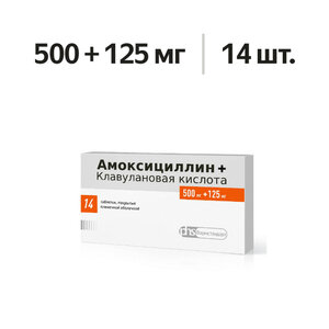 Амоксициллин + Клавулановая кислота таблетки 500 мг + 125 мг 14 шт.