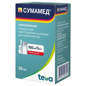 Сумамед порошок для приготовления суспензии 100 мг/5 мл клубника 20 мл