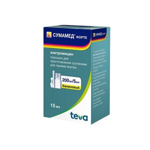 Сумамед форте порошок для приготовления суспензии 200 мг/5 мл банан 15 мл
