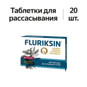 Флюриксин таблетки для рассасывания шалфей с солодкой, ментолом и витамином C без сахара 20 шт.