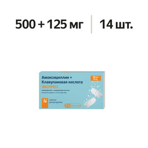 Амоксициллин + Клавулановая кислота Экспресс таблетки диспергируемые 500 мг + 125 мг 14 шт.