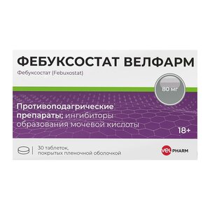 Фебуксостат Велфарм таблетки 80 мг 30 шт.