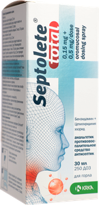 Септолете тотал спрей для горла 0.15 мг + 0.5 мг/доза 250 доз 30 мл