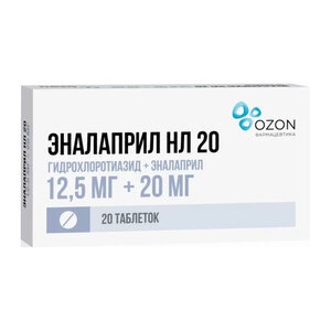 Эналаприл НЛ 20 таблетки 12.5 мг + 20 мг 20 шт.