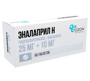Эналаприл Н таблетки 25 мг + 10 мг 60 шт.