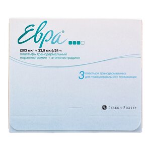 Евра пластырь трансдермальный 203 мкг + 33.9 мкг/24 ч 3 шт.