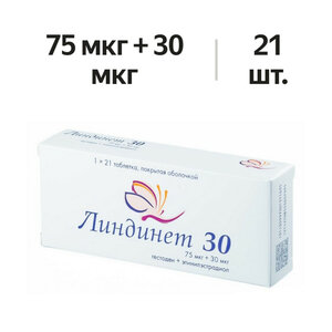 Линдинет 30 таблетки 75 мкг + 30 мкг 21 шт.